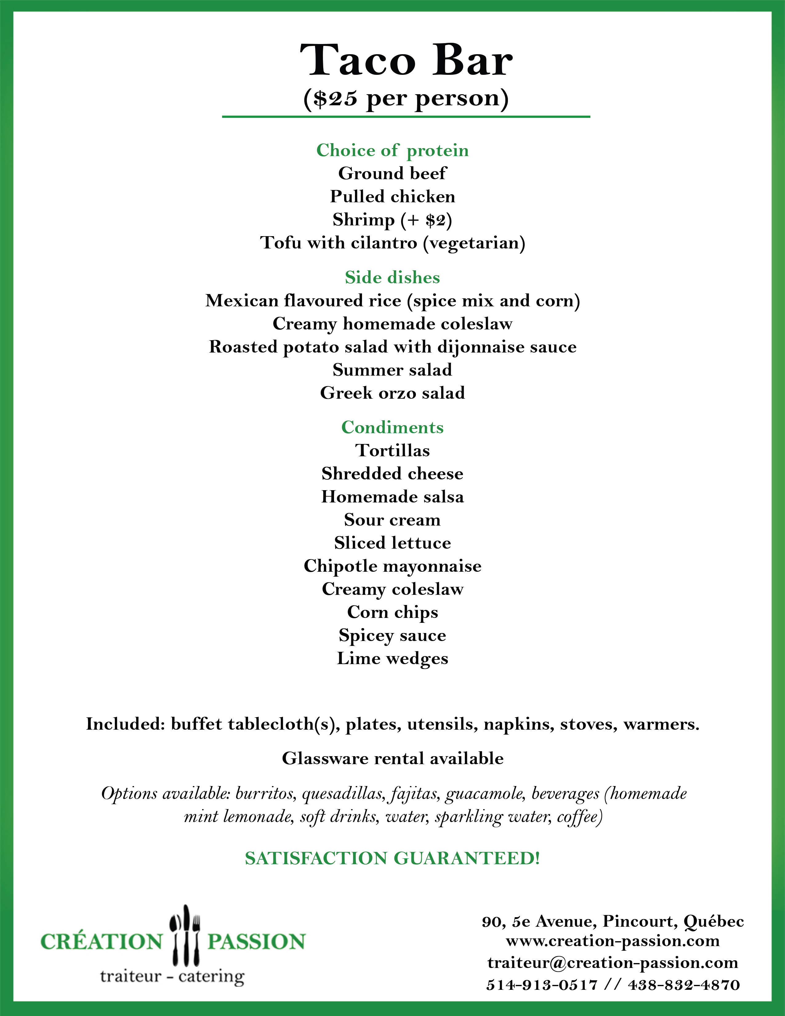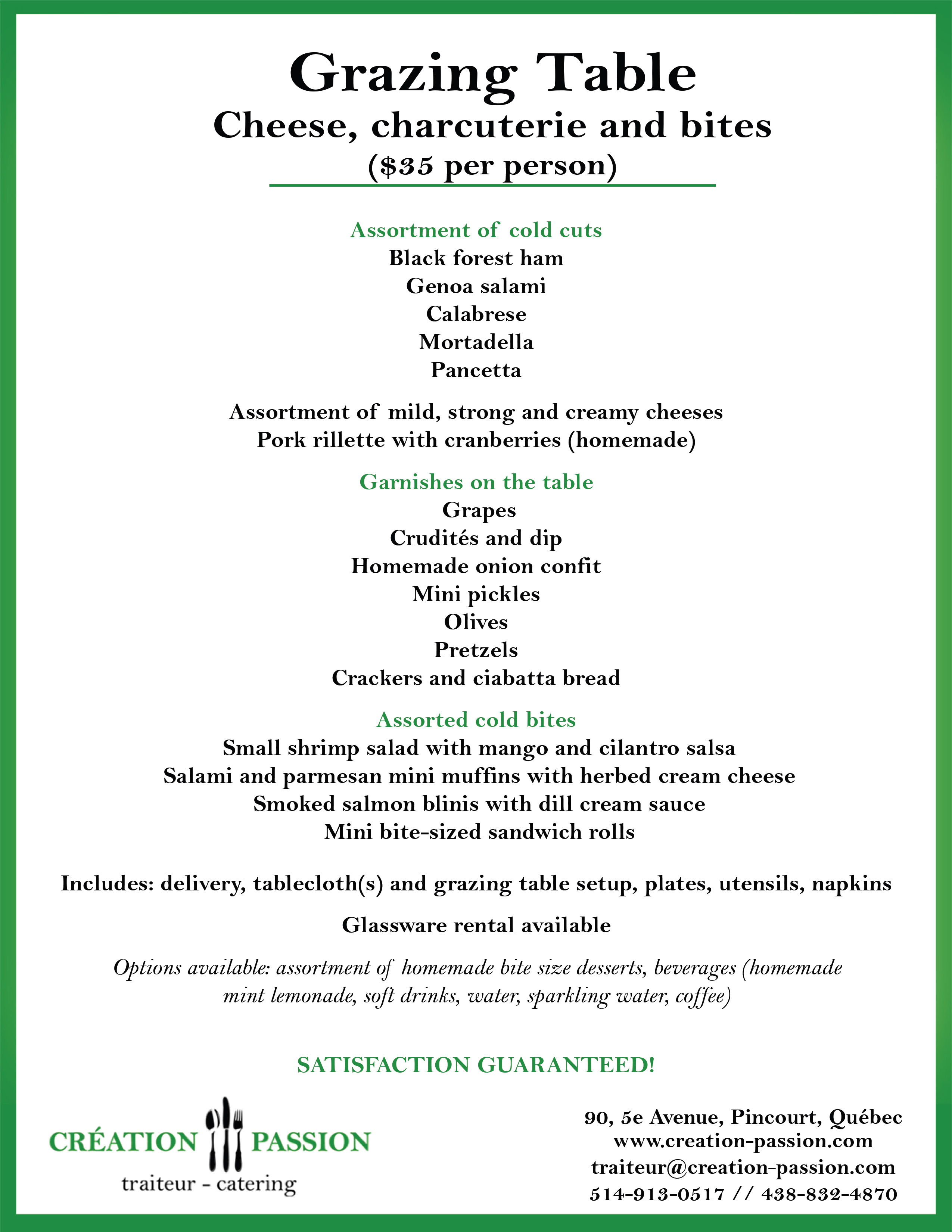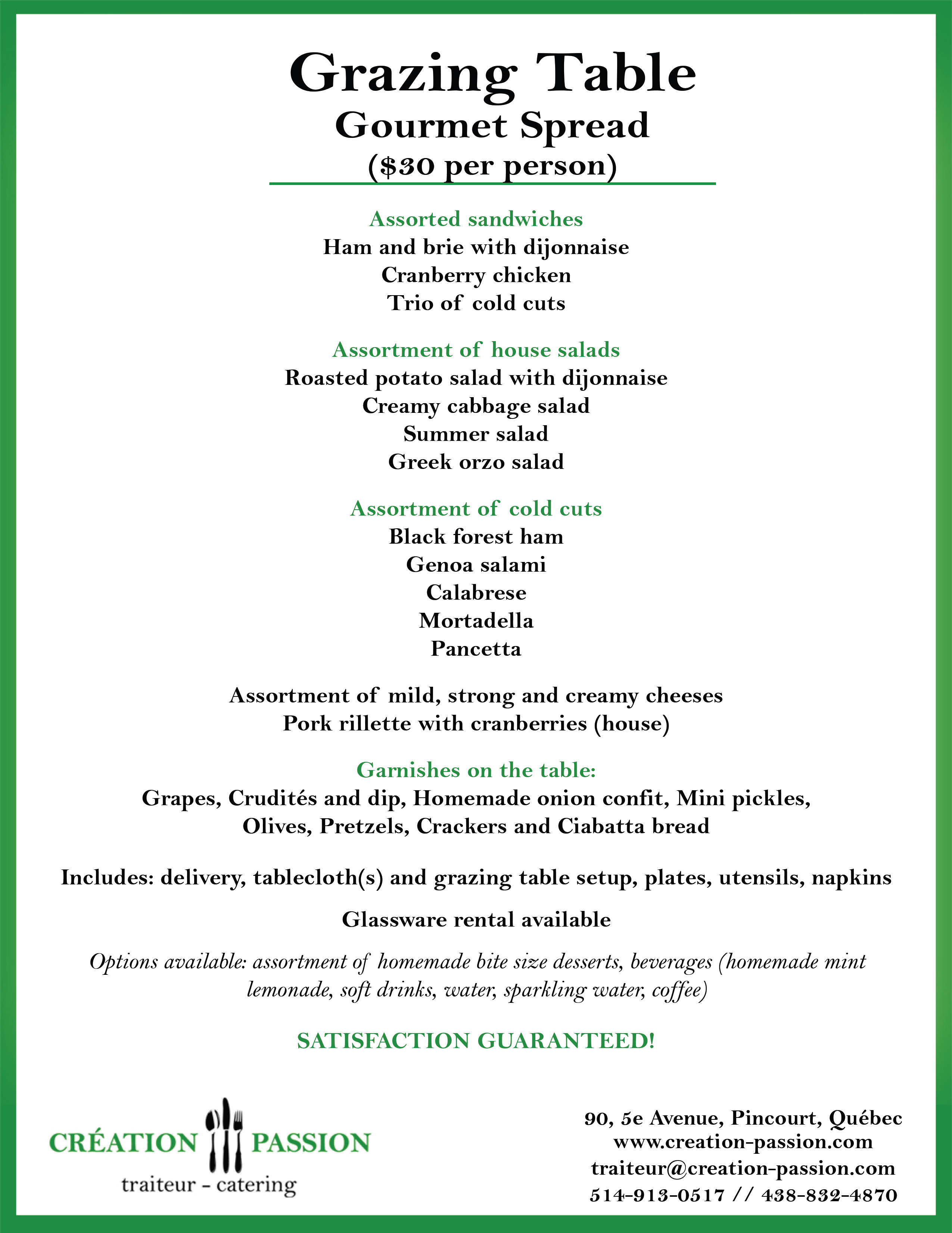 Creativity & passion are on the menu and you're sure to find something tasty, delicious and satisfying for all your guests!