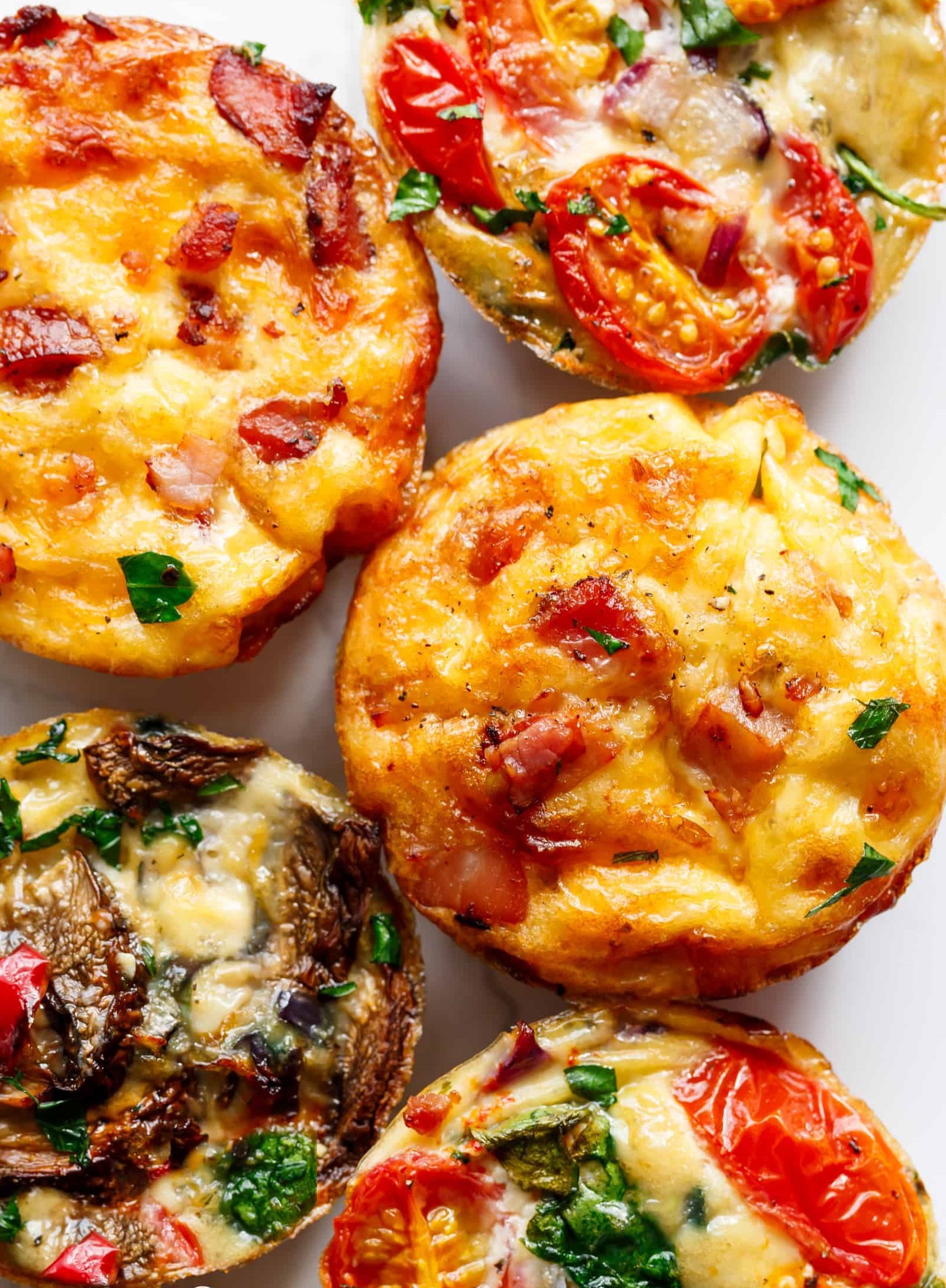 Mini quiches, pommes de terre, assortiment de viandes, crêpes françaises et sirop, fruits frais, muffins et confitures, café et thé.